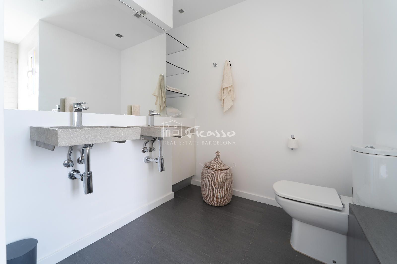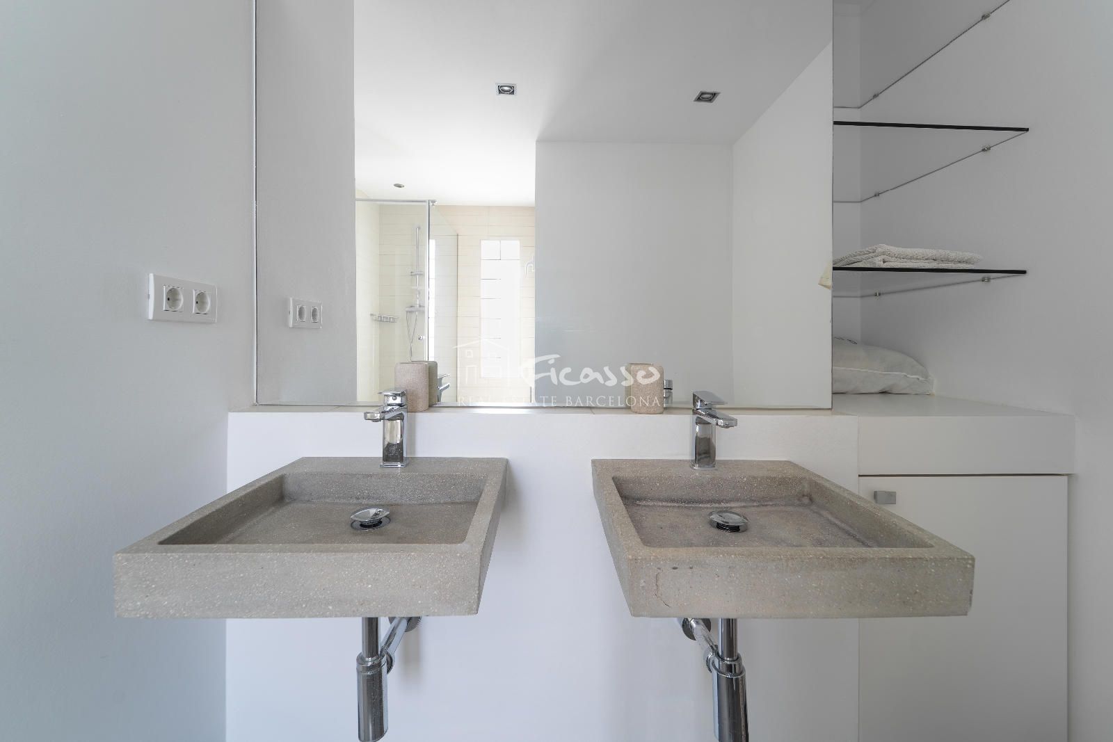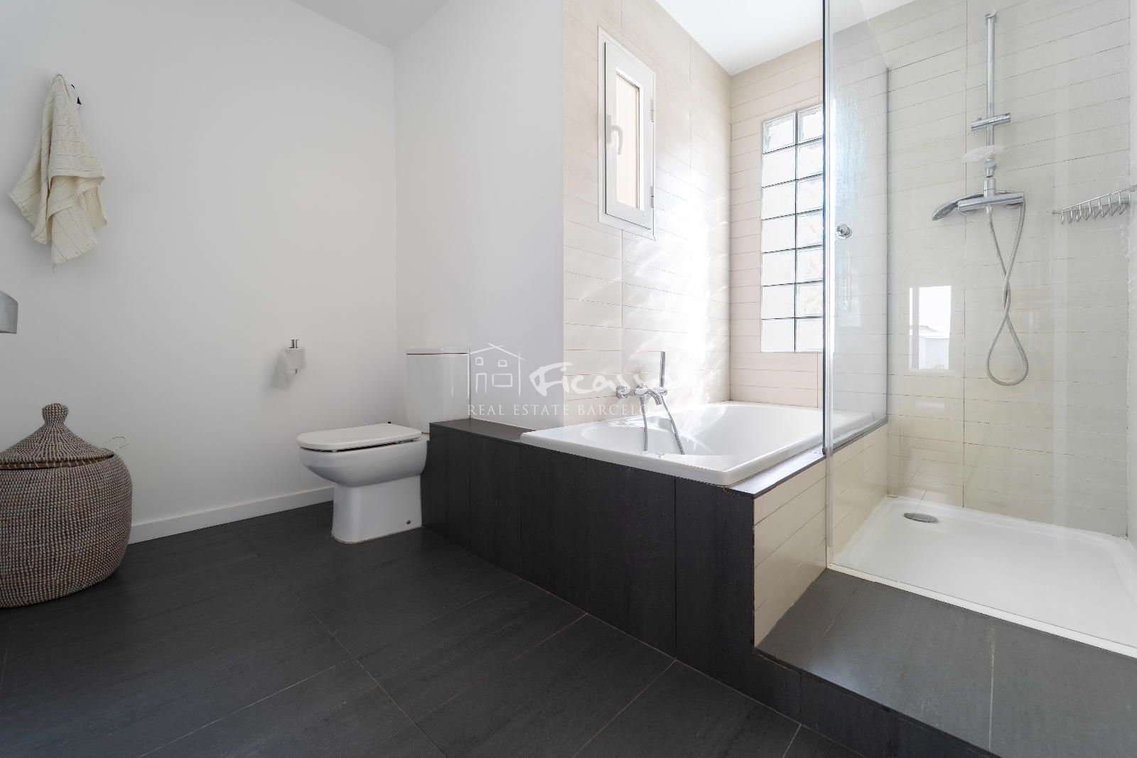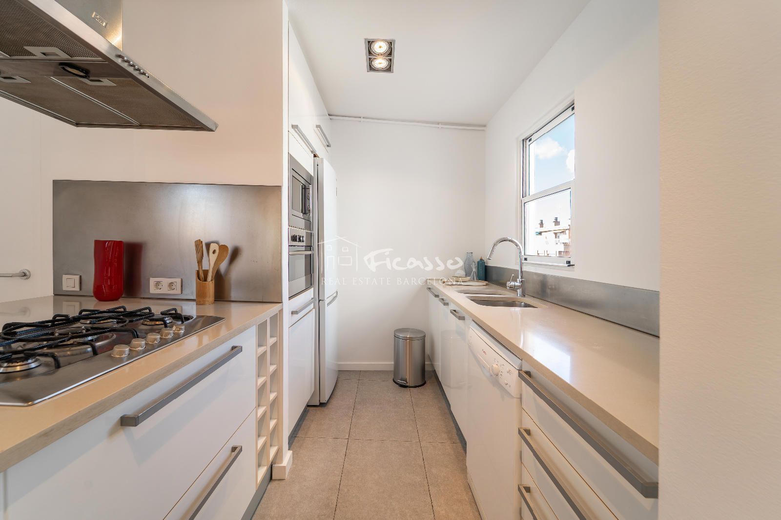 La estancia cuenta con una excelente distribución. Dispone de un salón-comedor con cocina abierta, una galería, dos habitaciones (una individual y una doble), dos baños independientes y dos terrazas grandes. El salón-comedor está amueblado con estanterías, un sofá, sillones y mesas de centro y mesa comedor de 4 comensales. Cocina abierta y moderna. Totalmente equipada con una gran isla, nevera, cocina de cinco fuegos, horno, microondas, lavavajillas y utensilios de cocina y de comedor. Al lado de la cocina encontramos un lavadero equipado con lavadora y la caldera de gas. La habitación doble está totalmente amueblada con cama doble y armario empotrado. Además la habitación dispone de una terraza privada grande con mesa y sillas para 2 personas y 2 tumbonas para tomar el sol de tarde. La habitación individual está amueblado como despacho para trabajar o estudiar. Los dos baño son completos. Uno de los baños es completo con plato de ducha y una ventana por donde entra mucha luz. El otro es completo con bañera, ducha de obra y con doble pica. Es un ático con dos terrazas, una de 22m2 que es privada de la habitación principal y tiene vista a Tibidabo y la otra de 29m2 que se accede por el salón, con vistas al mar y a la Sagrada familia. El ático es totalmente exterior por lo que reciben mucha luz solar durante el día.
